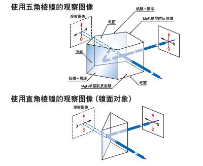 通過鏡面的2次反射,使鏡面對(duì)稱的反射圖像變換為與物體相同的正立圖像。 在照相機(jī)進(jìn)化為數(shù)碼相機(jī)之前,為了使圖像不形成鏡面對(duì)稱,使用五角棱鏡將物體發(fā)出的光線直角偏轉(zhuǎn)。 也作為激光噴墨器的直角標(biāo)。